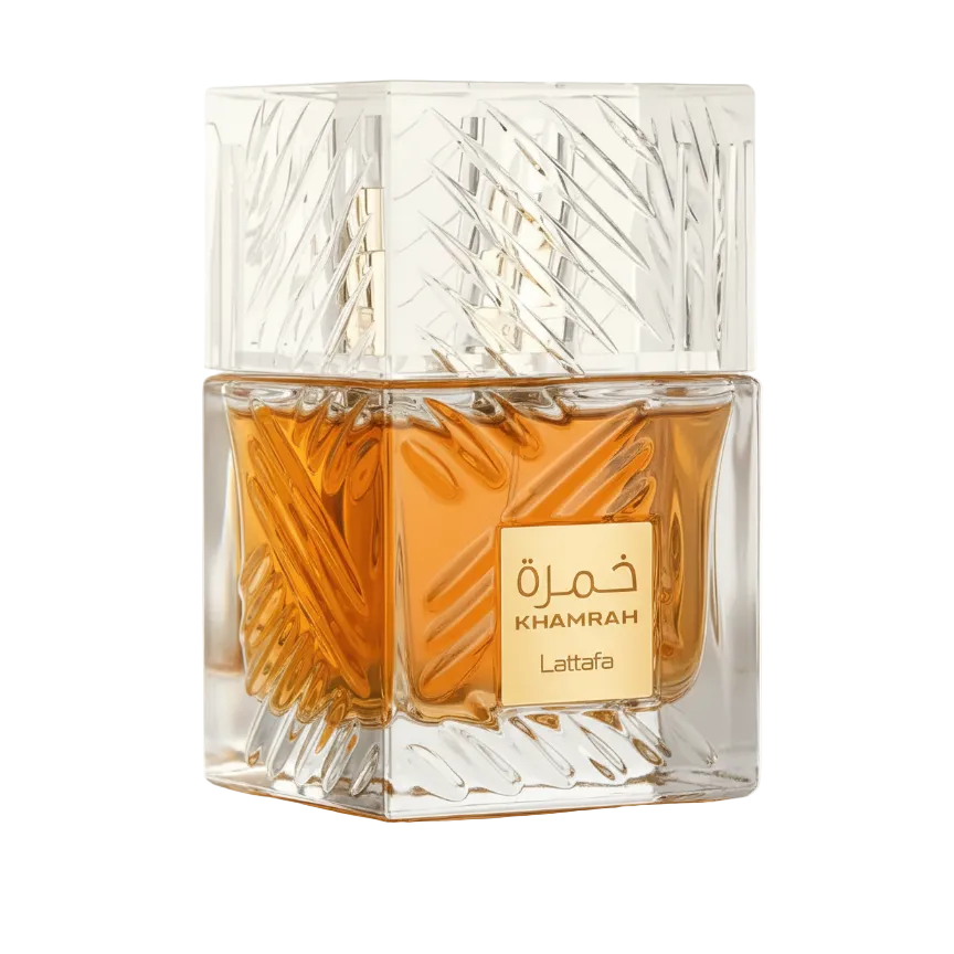 Khamrah de Lattafa Perfumes es una fragancia de la familia olfativa Oriental Especiada para Hombres y Mujeres. Khamrah se lanzó en 2022. Las Notas de Salida son canela, nuez moscada y bergamota; las Notas de Corazón son dátiles, praliné, nardos y Mahonial; las Notas de Fondo son vainilla, haba tonka, Amberwood, mirra, benjuí y Akigalawood.